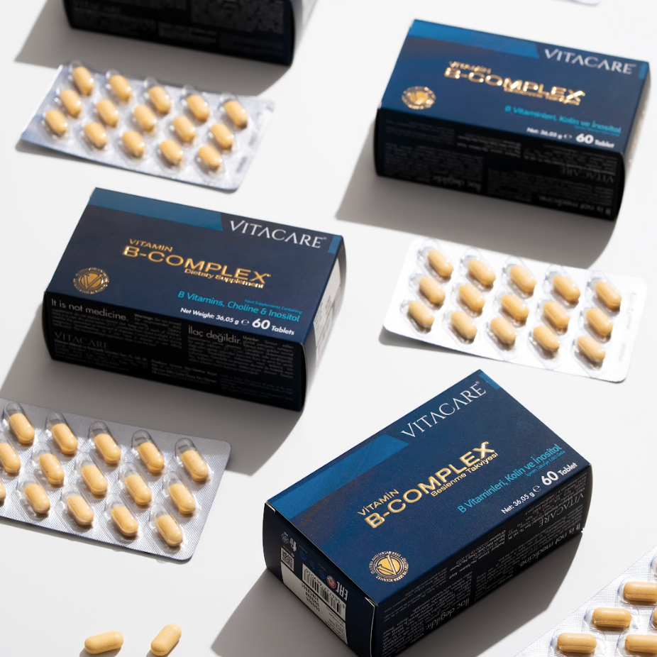 B-COMPLEX Vitamin 60 Tablet - B1, B2, B3, B5, B6, B12, Folik Asit, Biotin, Kolin, İnositol